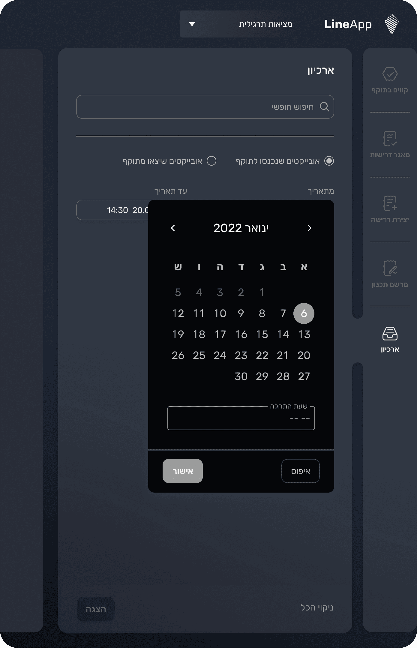 To streamline search, the user first selects a date range; only then are the relevant results displayed
