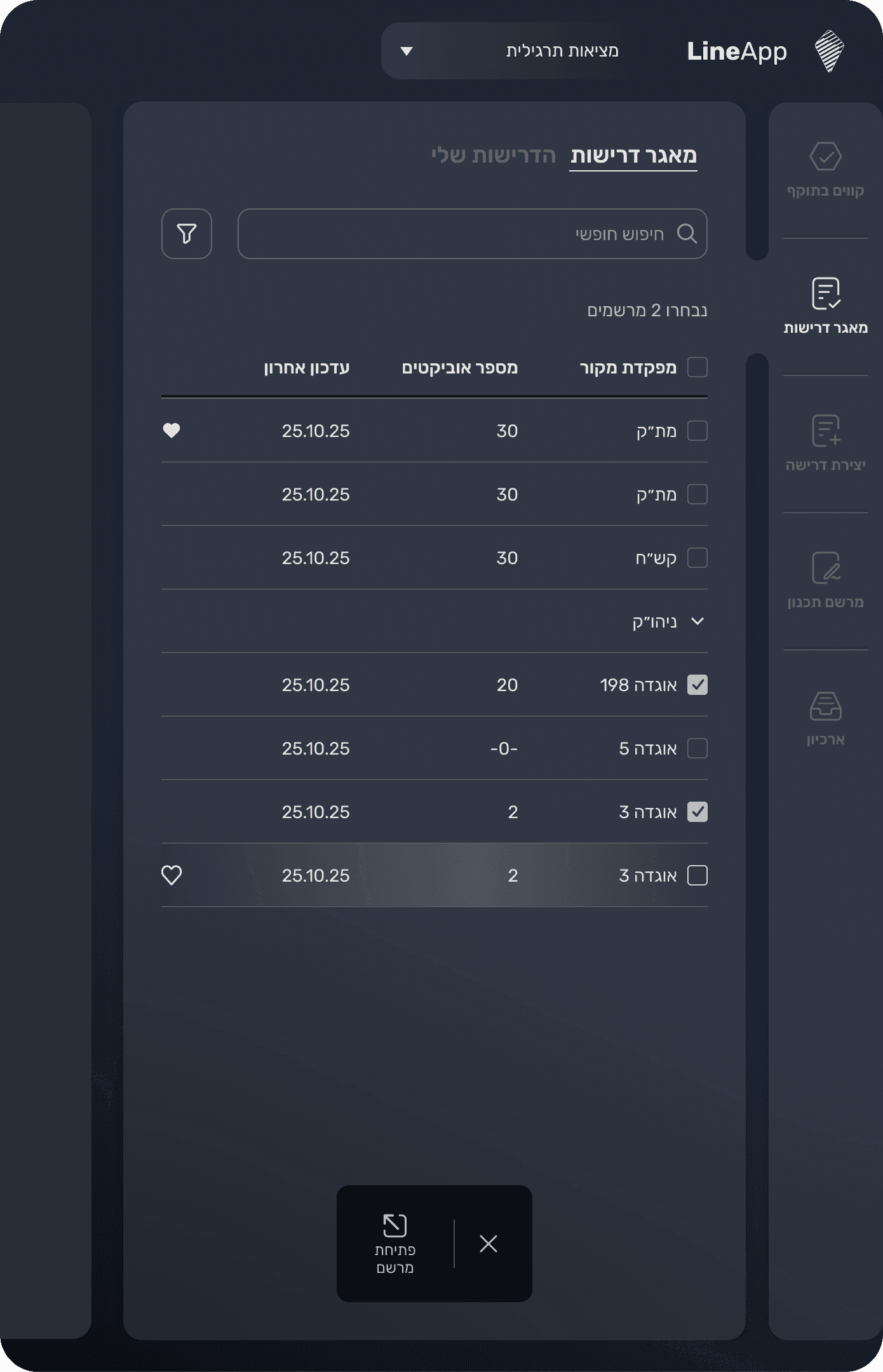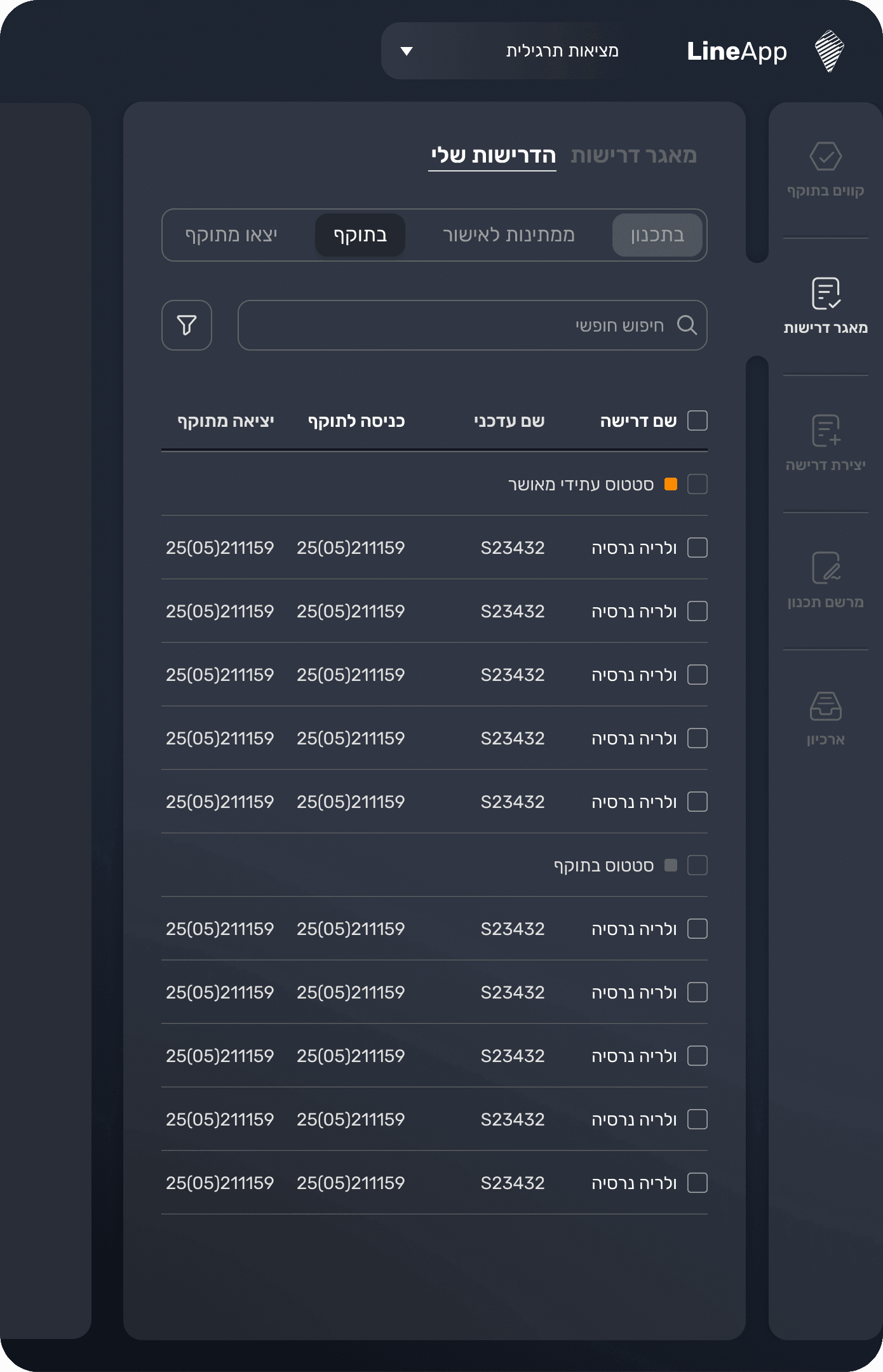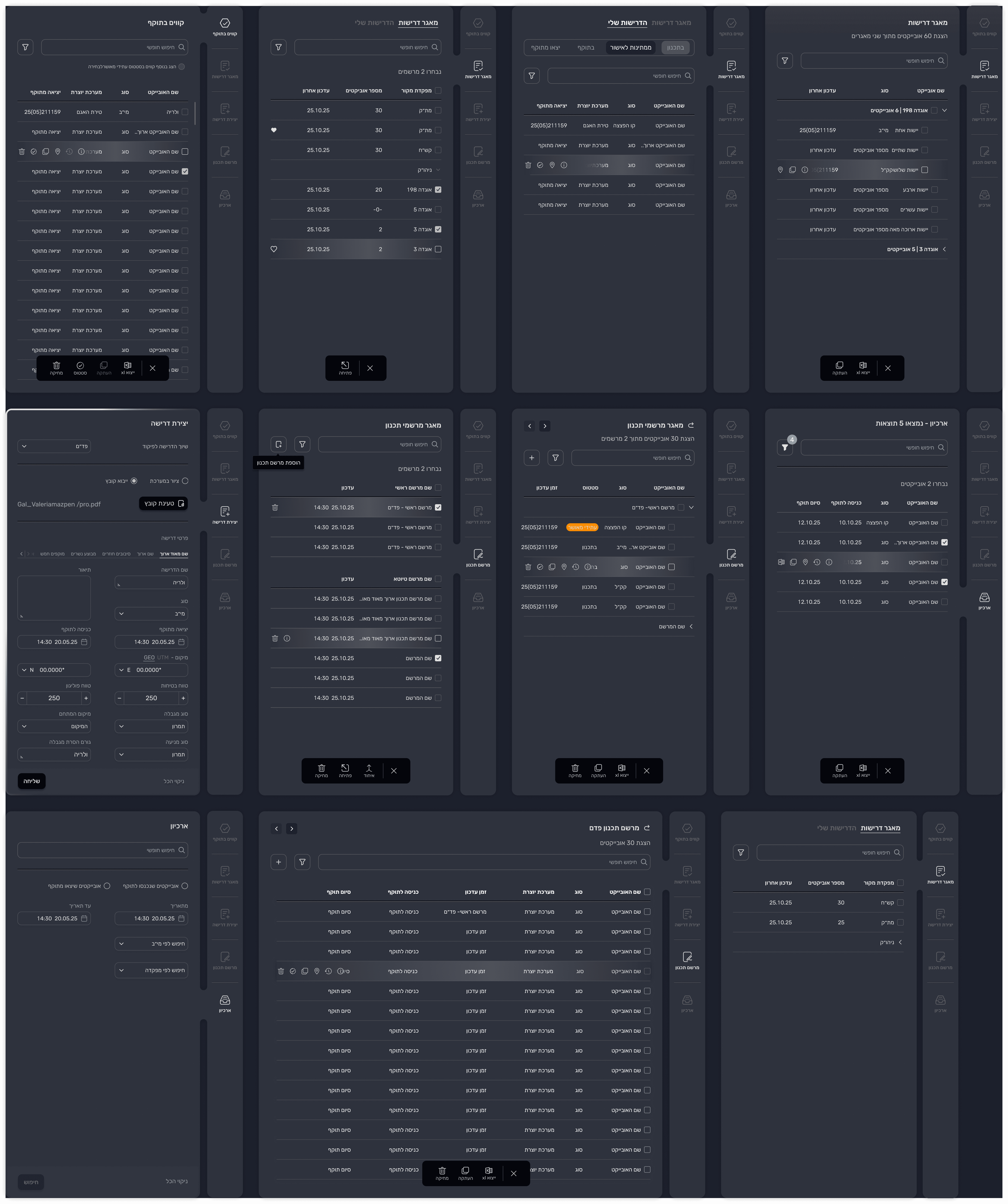 The system is structured around multiple sidebars, each representing a different tab. This approach creates a clear and consistent way for users to navigate between requests, active operations, and the archive.
