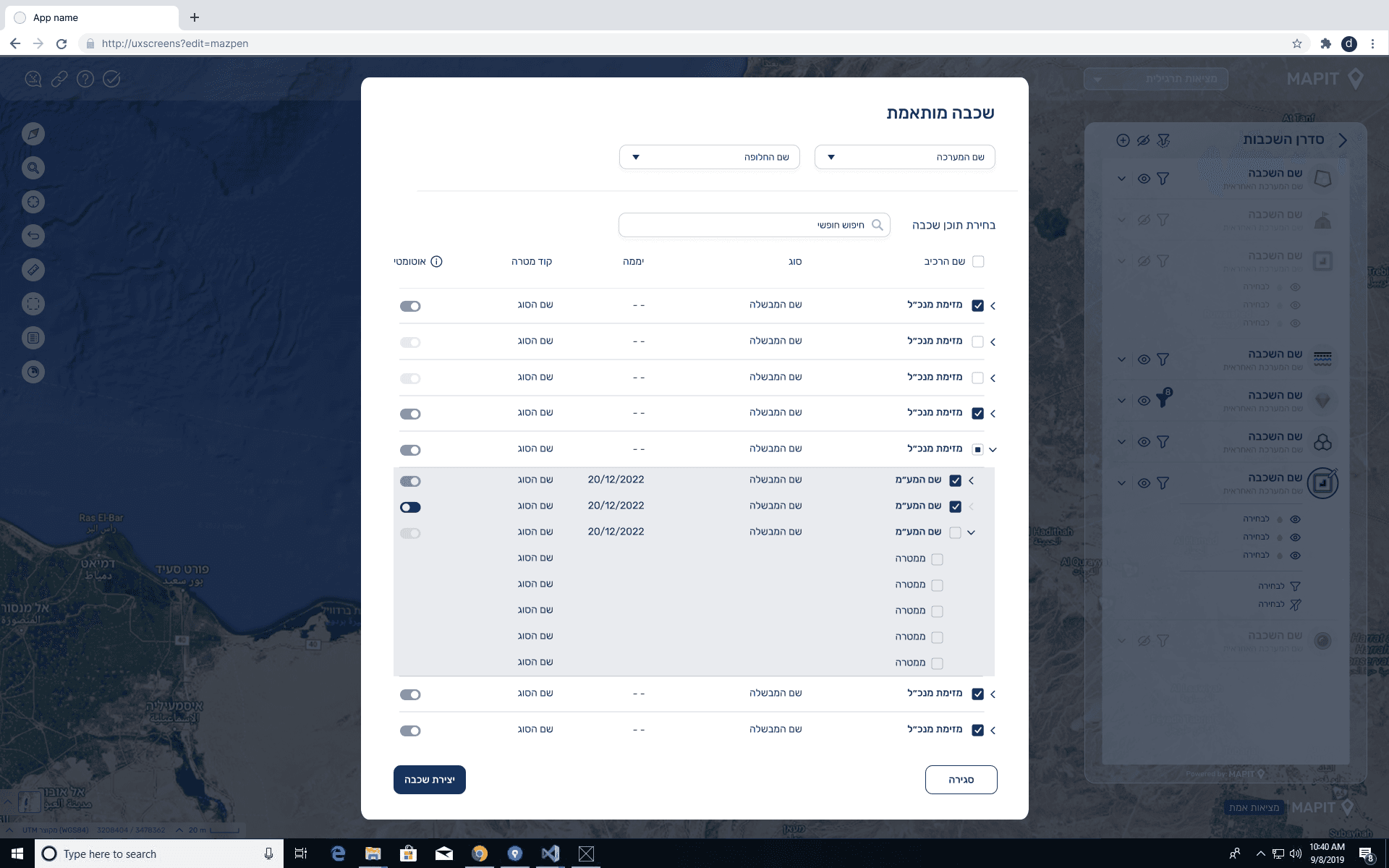 A major challenge in the Mapit project was organizing large amounts of spatial data in a clear and compact way, while maintaining balance between the panels and the map view.