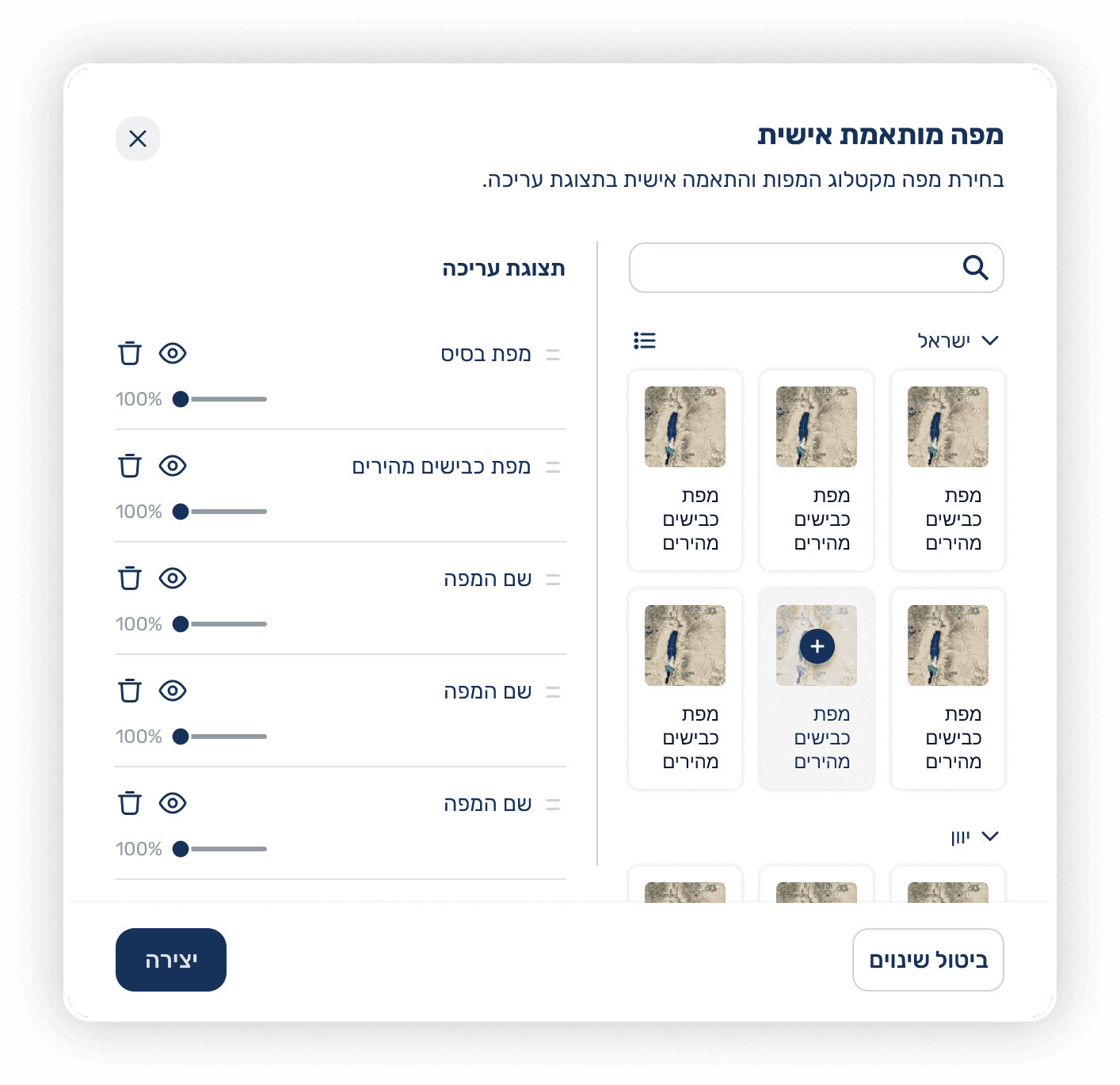 Users with the appropriate permissions can create a personalized map layer that is automatically added to the layer manager. The interface presents a dynamic, hierarchical selection flow tailored to the user’s specific needs, along with a capability selector that defines how the layer will update automatically over time.