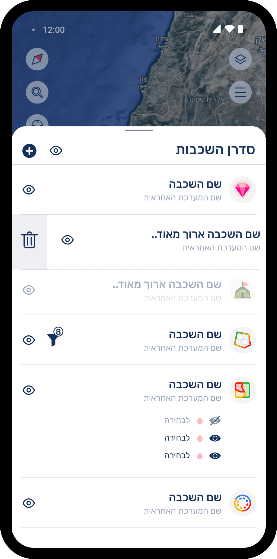 Opening the main layer manager and viewing currently active layers, with various visibility controls (such as show/hide, opacity adjustments, and more).
