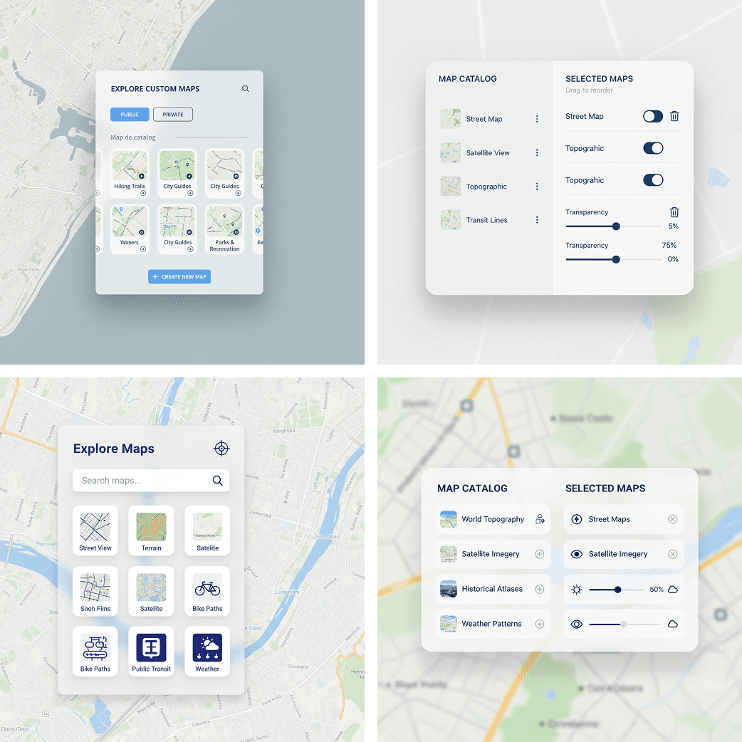 Since the layers are pulled from an external API with uncontrolled titles and metadata, we designed flexible components that adapt seamlessly and allow quick access to information without creating visual clutter.