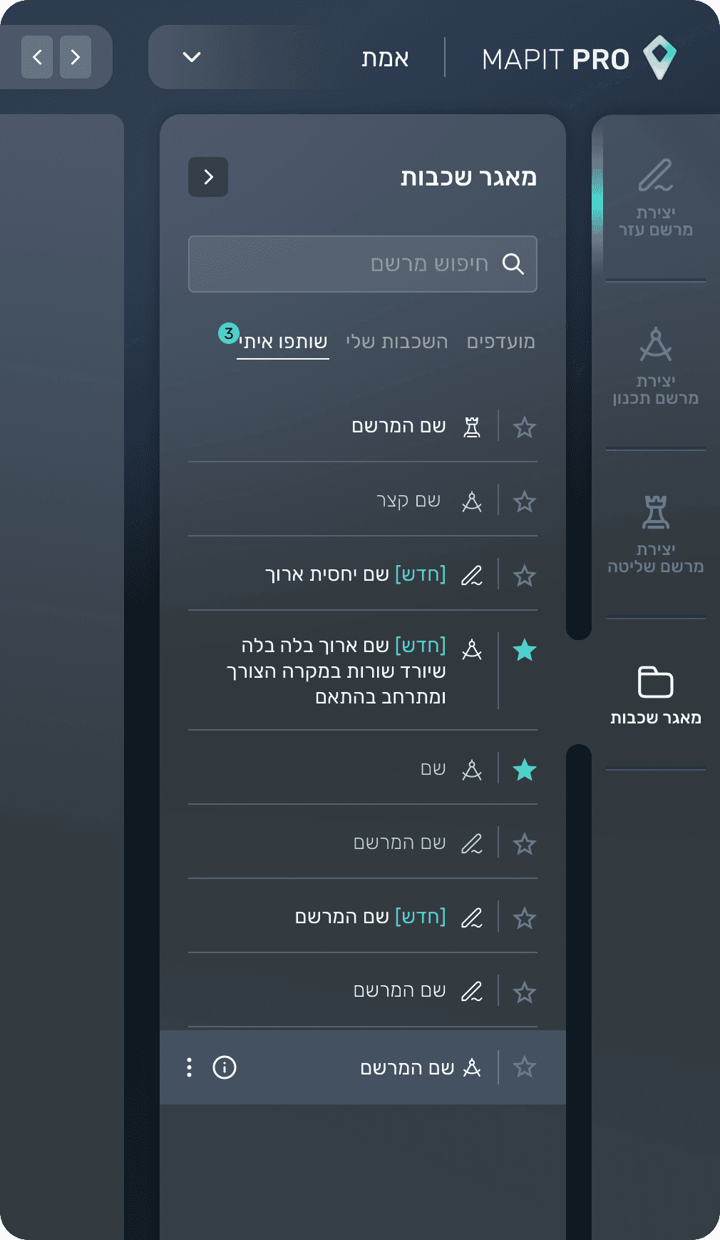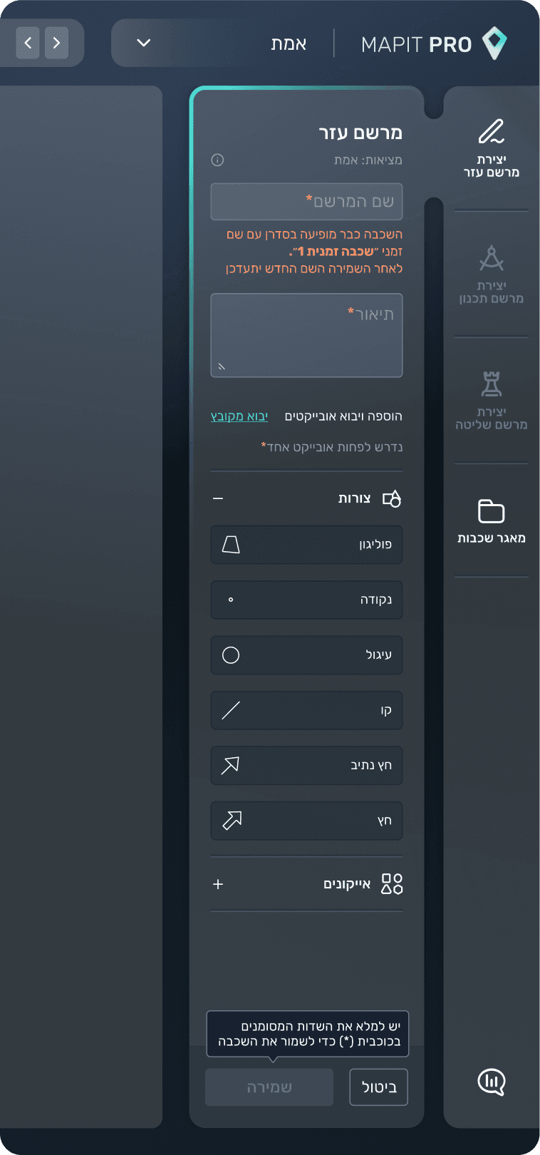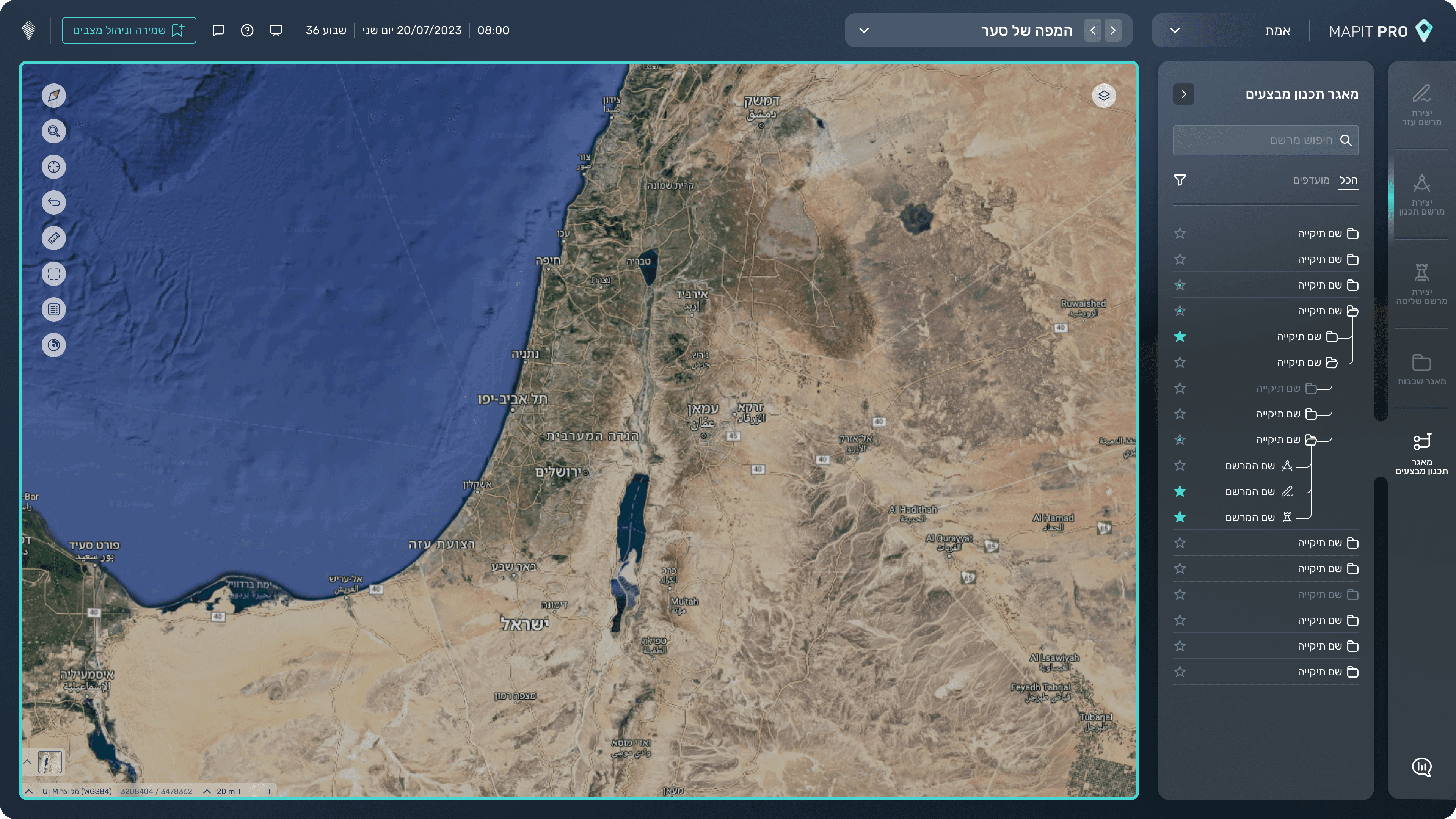 This screen demonstrates a new feature added after production: the Operational Planning. Unlike the initial, simpler layer library, this tab is more complex, with folders that expand into multiple nested subfolders. The main challenge was designing a clear and intuitive structure that displays the hierarchy and connections between layers without overwhelming the user.
