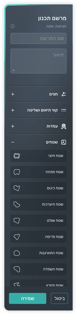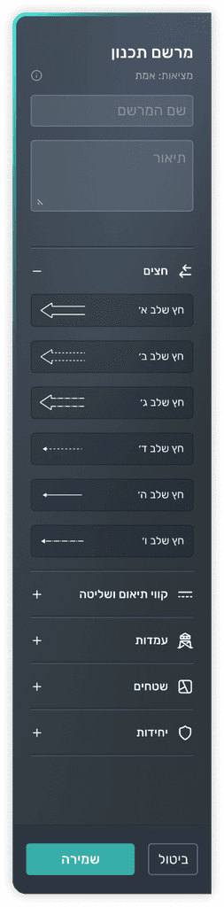 At the early stage, following initial research, we created a basic wireframe that explored the combination of drawing tools (shapes, lines, etc.) with a small sidebar for managing layers. This helped us test simplicity versus richer functionality. As research progressed, we realized the system required a more complex and feature rich panel, making this direction less relevant.