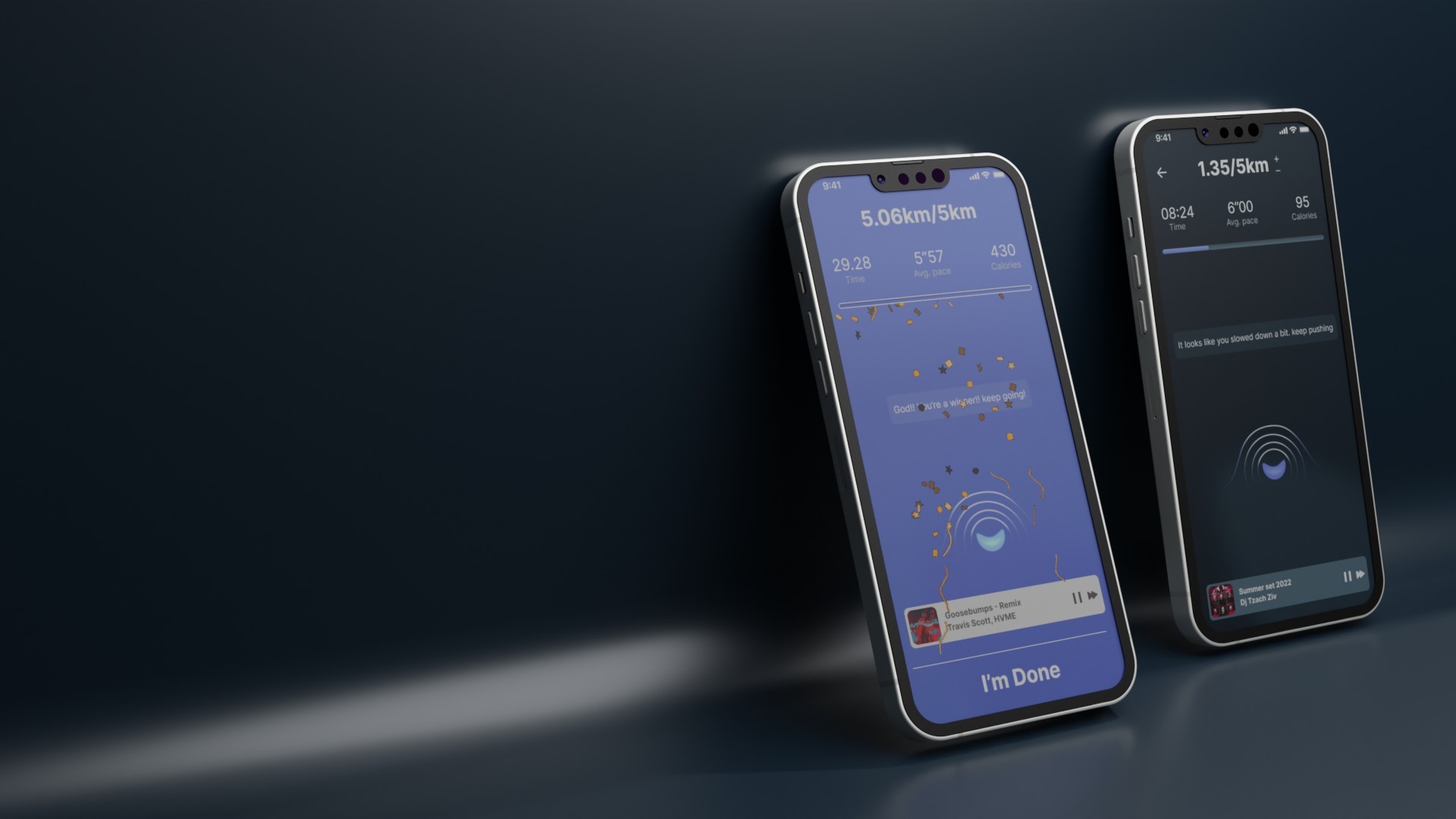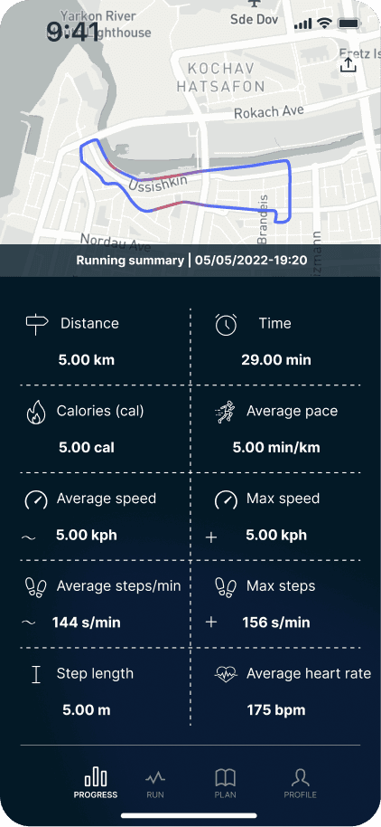 The dark mode of the progress screen emphasizes