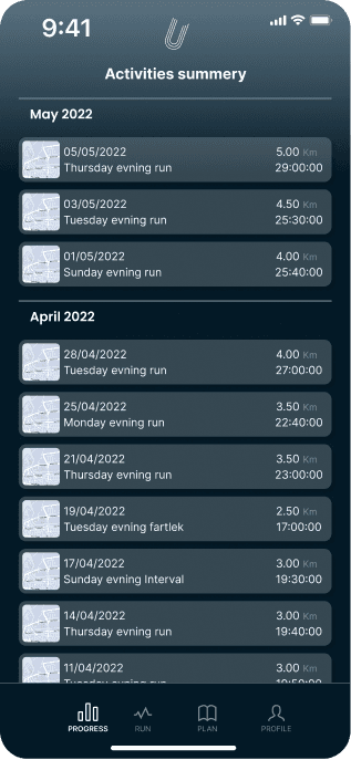 where the users meet their running partner, Runy.